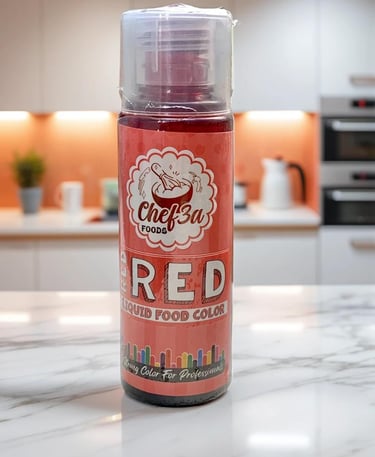 “Chef 3A Red Food Colour 120ml – bold, vibrant shade perfect for velvet cakes, frostings, and eye-catching desserts.”