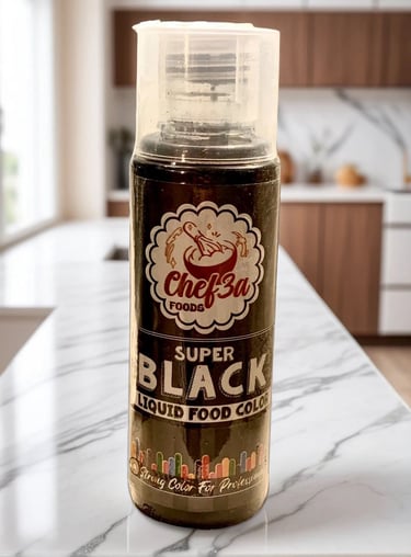 “Chef 3A Super Black Food Colour 120ml – deep, intense shade that delivers bold elegance to cakes, fondants, and frostings.”