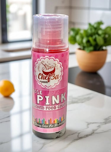 “Chef 3A Rose Pink Food Colour 120ml – soft, elegant shade that gives cakes, frostings, and desserts a charming, delightful finish.”