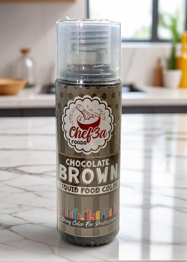 “Chef 3A Chocolate Brown Food Colour 120ml – rich, natural shade that gives cakes, chocolates, and desserts a deep, delicious finish.”