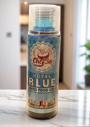 “Chef 3A Royal Blue Food Colour 120ml – rich, vibrant shade that adds a striking, professional touch to cakes, icings, and desserts.”